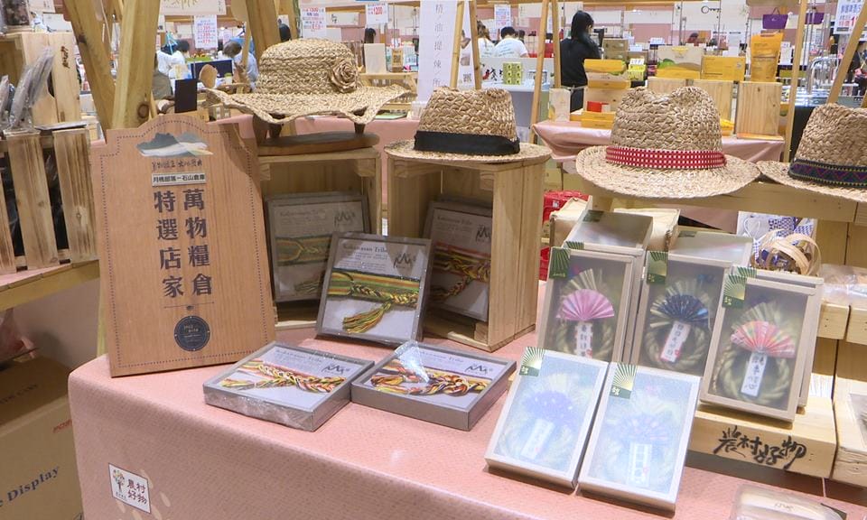 石山部落攤商李念潔說明:「現在編織的東西就只有老阿嬤,在八、九十歲以上的他們才會有這種編織法,除了有帽子 有衣服都可以特製以外,希望大家可以到當地去走一趟,可以欣賞那個美景以外也看看好東西。」