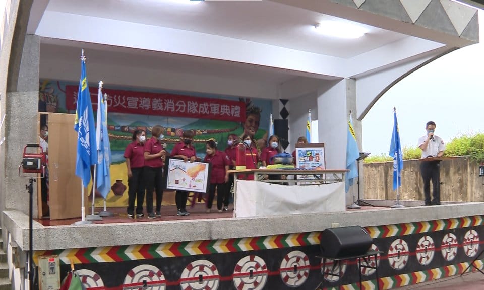 接獲台東縣長的授旗儀式,達仁防災宣導義消分隊正式成軍,縣長表示,期盼把災防意識深植南迴各部落,在災難發生前及早防範,把傷害降到最低。