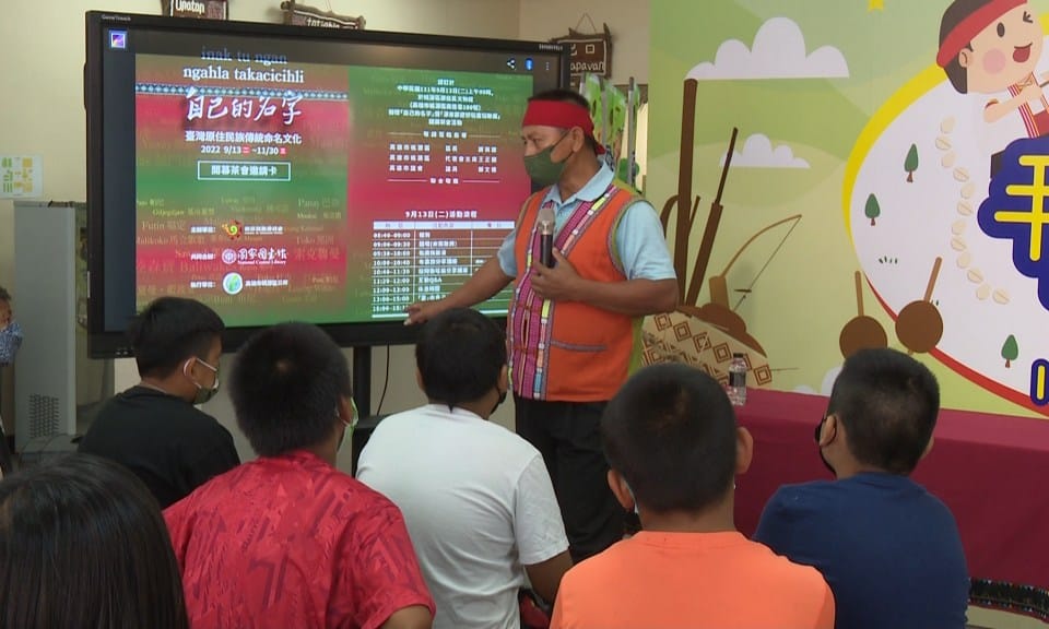 講師 Dahu Lavalian (江維明)說明:「隨著政府的這種變遷,就是用漢語、用華語,一直把我們的名字喊出來,現在又要讓我們去講我們的名字,所以我剛剛跟小朋友講說,很簡單你只要在家裡,你的父母親稱呼你什麼,那個就是你的名字。」