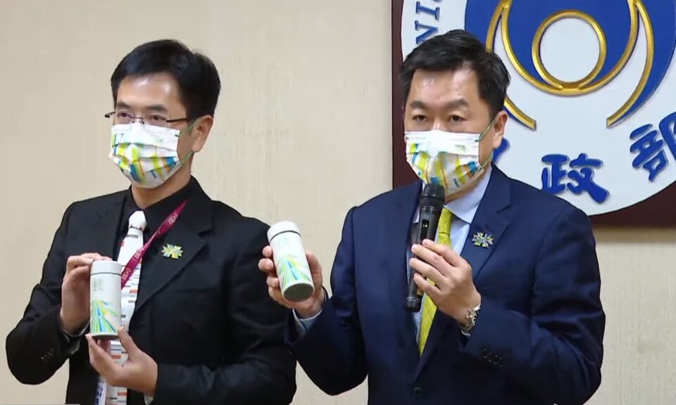 陳宗彥說明:「我們從這個帽子的設計,杯子的這個保溫杯的台灣精品的製造,我們都結合守土衛國,你我同行這樣的一個概念。」
