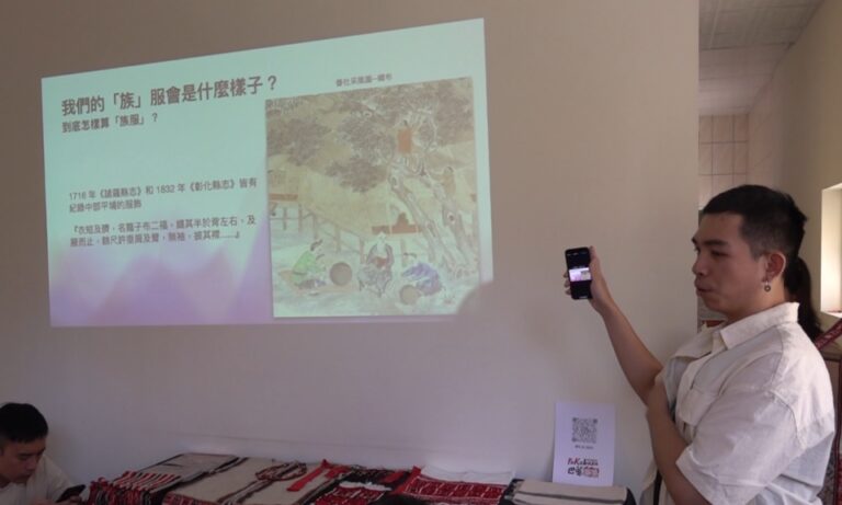 13部落婦女、青年圍著技藝老師,仔細聆聽頭飾製作的過程及技巧,為推廣部落傳統技藝及服飾文化,來義鄉高見部落在周末下午開設頭飾課程,運用採集回來的圖紋,從繪圖到縫製學員們都親自動手做。