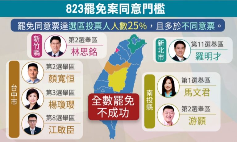 153第二波罷免案正式進入尾聲,這次名單包含國民黨籍立委羅明才、林思銘、顏寬恒、楊瓊瓔、江啟臣、馬文君以及游顥,最終全數罷免不成功;身為立法院副院長的江啟臣在完成投票後表示,這段時間團隊承受不少壓力,接下來最想給團隊一些休息時間。