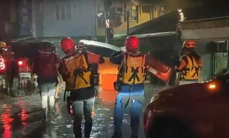 59花蓮縣長 徐榛蔚:「當水漫上來我們就請我們消防局第一個先去救人為先,將無論是在已經漫到一樓的讓鄉親能夠往二樓甚至往三樓來移動,這是我們垂直避難的部分,至於在收容所也會提供照顧協助;現在兩個洪波,在第二個洪波在4點多過去以後,現在整個水勢比較遲緩、比較平緩,在我們光復鄉的部分,慢慢水現在有稍微退去,因為大同水門和大安水門有將水引導到光復溪的部分也已經打開了,所以現在水是慢慢往這兩個水門去。
