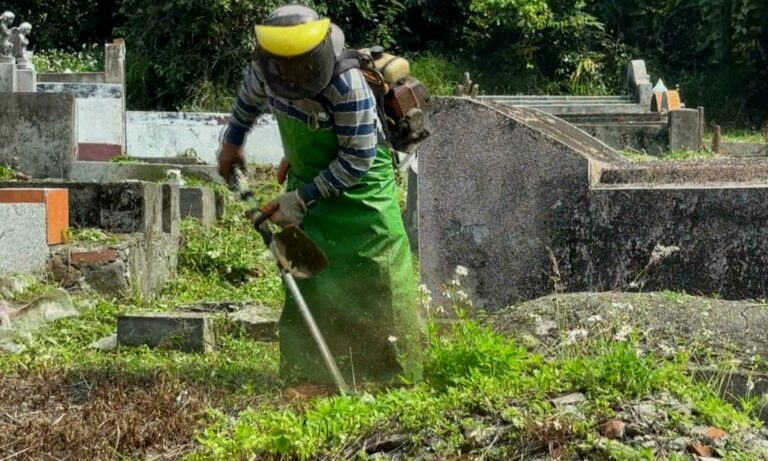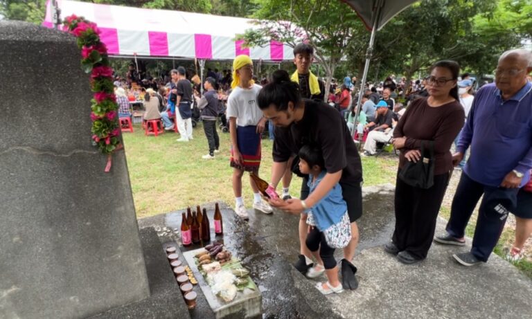14台東卡大地布部落卑南族人,28日在部落追思文化園區,舉辦祭祖掃墓活動,許多族人都攜家帶眷參加,而掃墓過程也提倡環保,不燒香、不燒金紙,希望以部落傳統友善土地的方式緬懷先人。