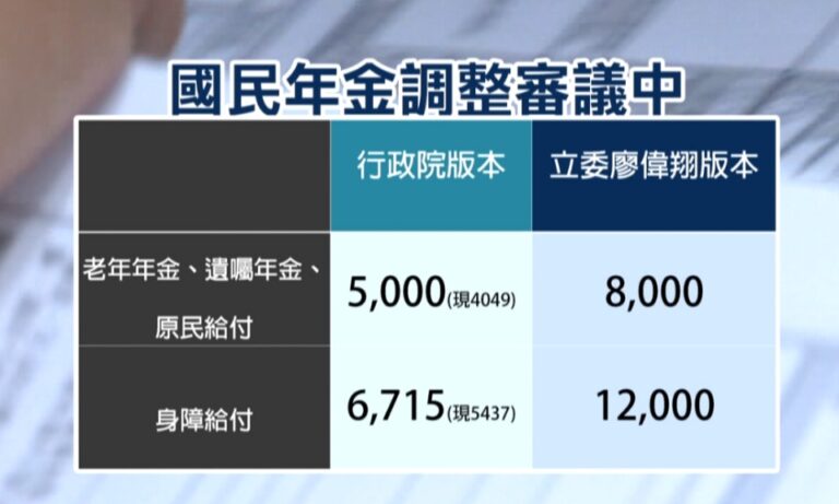 78國民年金有望調整領取金額,行政院推出草案,老人年金、遺囑年金以及原民給付,從4,049元提升至5,000元,身障給付從5,437調高至6,715元。