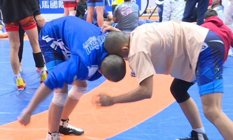 14記者 Aniw(李星儀):「是的主播,各位觀眾朋友,全中運賽事來到第四天,記者現在就在嘉義吳鳳科大,也就是角力的比賽現場,賽事在早上8:30就已經開始,選手們各個是使出了渾身解術,就是為了要爭取榮耀,在角力場上有許多年輕的原住民選手,像是臺東東大體中的胡諾亞,苗栗苑裡高中國中部的瓦旦.卡瓦斯與陳恩芯等人,還有非常非常多的原住民選手都來參賽...。