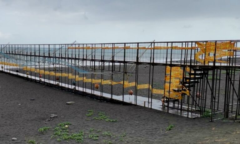44台東南迴藝術季,兩年前的互動式藝術作品「夏日轉場」,在大武海邊設置長約百公尺的兩層步道,但造成一位女性遊客不慎摔落沙灘受傷,向台東縣府提告申請國賠,今年判決出爐,台東縣府判賠21萬。