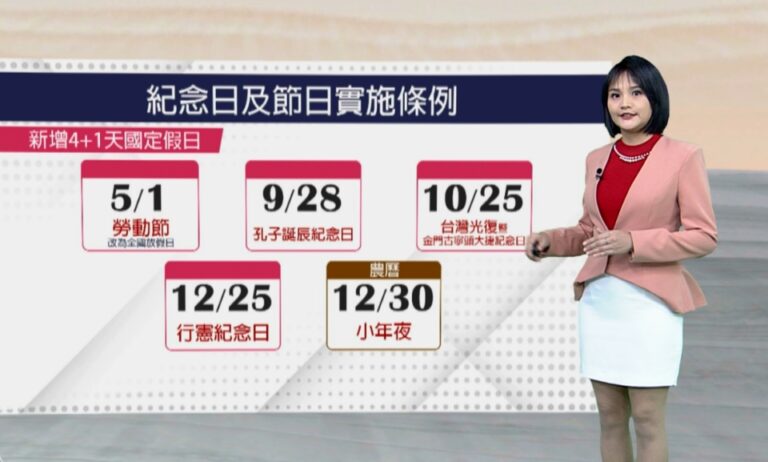 728《紀念日及節日實施條例》 歲時祭儀假 連續3日 首先,是族人們期盼已久的《紀念日及節日實施條例》,終於正式上路了!立法院在5月初、三讀通過後,總統賴清德也在5月28日公布了總統令,依照規定,條例在公布三天後正式生效,也就是說今天已經開始實行了。