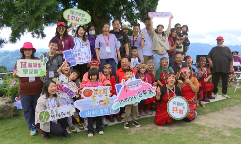 41拉著遊客一起圍跳迎賓舞蹈,泰安鄉公所辦理文化觀光成果分享會,其中也結合文化生態輕旅行,讓民眾親身體驗部落文化與生態環境,不僅留下難忘的原鄉之旅,也為地方帶來更多觀光效益。