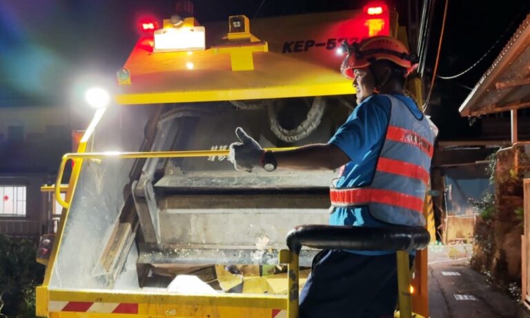 30民眾在家門口等垃圾車經過,再將手中的垃圾丟上車,台東達仁鄉從6月開始,試辦垃圾不落地政策,改變過去挨家挨戶收取垃圾的傳統方式,收垃圾的時間也從早上改為傍晚,有民眾表示,還需要一段時間適應。