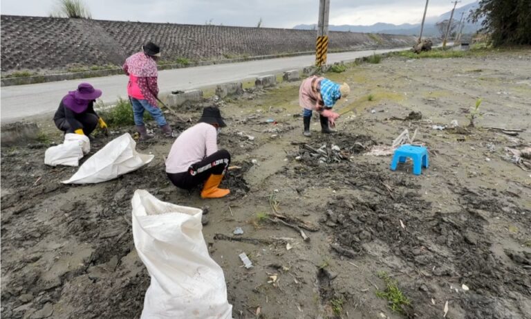 56為了協助地方恢復農業生產,環境部補助花蓮縣政府與光復鄉公所推動「以工代賑」計畫,聘僱人力進入農田撿拾翻耕後露出的垃圾,希望加快清理速度,也減輕農民的負擔。