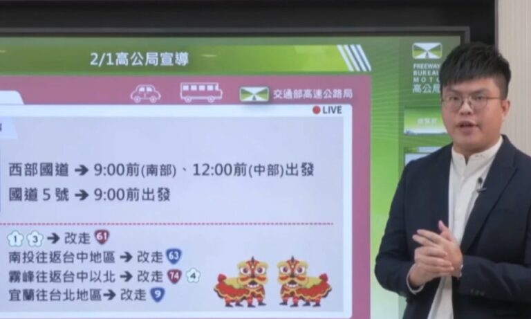 14高公局路況預報員 黃郁凱:「因為春節連假我們國道交通量真的很大,我們預估今天(1)是136百萬車公里、北向是達到1.6倍,所以我們會呼籲大家,可以多利用兩種方式避開我們的車潮,一種是時間分流、一種是空間分流。
