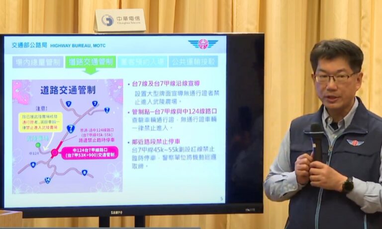 47國人期待的武陵農場櫻花季即將到來,交通部公路局宣布櫻花季交通疏運時程於2月8日至23日,另外也首次針對228連假期間實施高乘載管制,並且聯合相關單位共同規劃場內總量管制、道路交通管制、團客預約入場、公共運輸接駁等四大交通疏運措施;而武陵農場在櫻花季期間實施總量管制每日進場人數6000人,包括住宿遊客1800人跟一日遊遊客4200人。