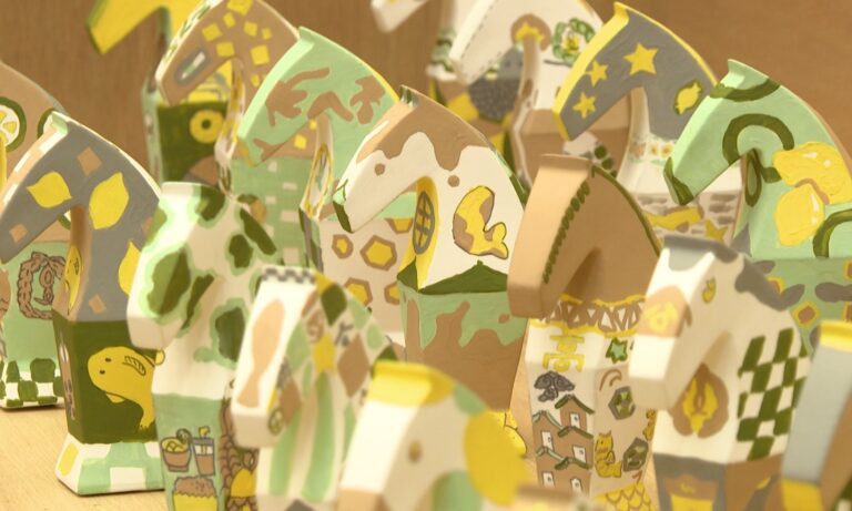 19學生利用布農族傳統服飾的黑,搭配小米的黃,以及在地植物、鳥類多樣色彩,設計出馬型彩繪藝術,適逢馬年高雄美術館,與學學文化創意基金會合作,辦理「感動馬高美聯展」邀集台灣、泰國、日本多所國小師生共同創作,收集在地文化色彩,設計出900多件馬型彩繪創作。