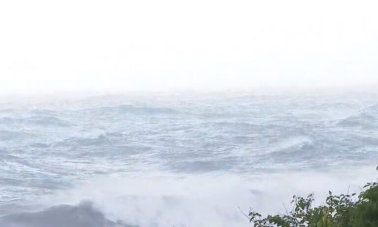 90山陀兒颱風速度牛步,持續在西南外海打轉,但大浪衝擊造成枋寮鄉大庄村海堤破裂,出現約30公尺大的缺口,海水不斷從缺口湧入;擔心會淹沒附近魚塭,第七河川分署及屏東縣政府水利處等單位派員前往查看。