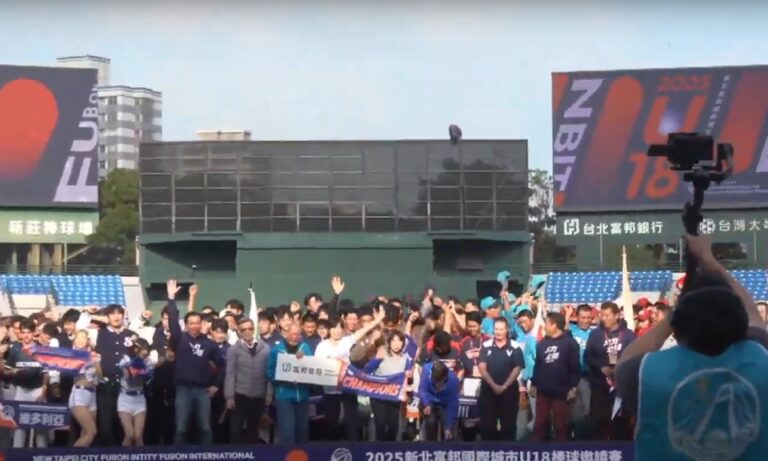 32選手在賽場上奔馳,拚命奔向本壘就是要拿下分數,2025新北富邦國際城市邀請賽,20日迎來冠軍戰,由新北藍隊決戰雲林縣,而新北藍在首局就拿下5分,一路強攻,並且又在五局上靠著曾聖恩轟出左外野兩分砲,終場是以12:1大勝雲林縣奪下冠軍,也完成了八連霸。