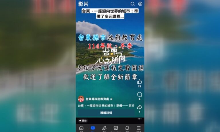 58打開手機瀏覽社群網站,不過滑著滑著卻看到,一篇名稱為台東縣政府教育處的貼文,以「多元課程免費開課」、「報名連結」等名義發布消息,並附上可疑連結,或要求加入陌生通訊軟體(LINE)群組;但是經台東縣府查證,這不是教育處官方粉絲專頁,並質疑內容涉及詐騙與個資蒐集行為。