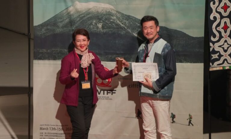 104遞上感謝狀,來感謝美國學校的數位捐贈,位在高雄桃源的樟山國小,常因颱風和土石流緣故而無法上學,學校也欠缺足夠的數位資源。
