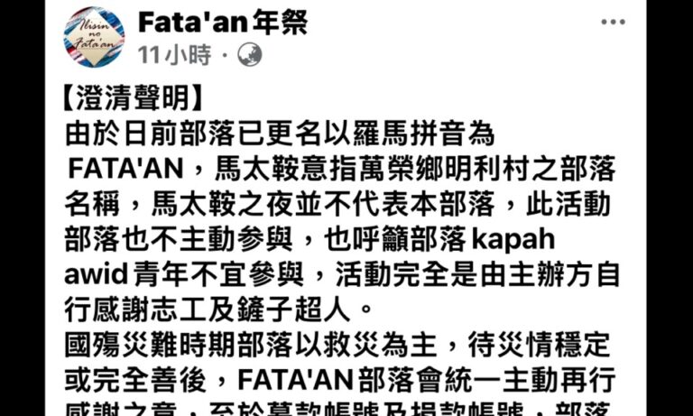 民團公益音樂會 Fata'an部落澄清未受邀請