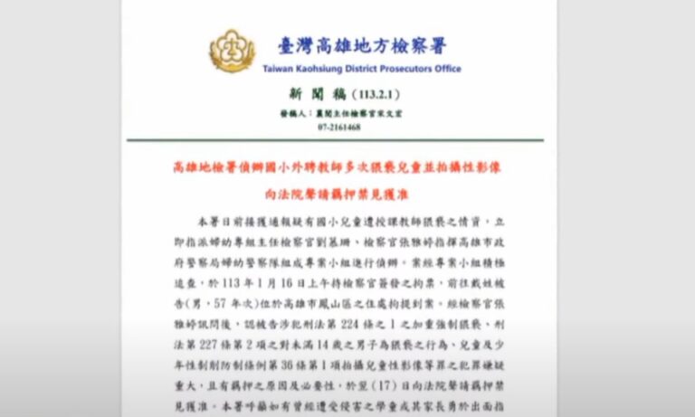 177高雄地檢署1日發布新聞稿指出,日前接獲情資,一名戴姓老師族語因涉嫌猥褻未成年男童,經高雄地檢署組成專案小組進行偵辦後,16日在戴姓族語老師鳳山區住處將其拘提到案。
