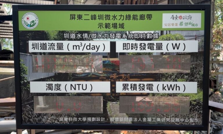 196屏東目前雖然還在枯水期,但位在來義鄉的「二峰圳」仍有穩定的水流量,因為這個特性加上具有防災、淨水優勢,水利專家丁澈士教授邀請金屬工業研究發展中心,在這裡架設2座小型微水力發電系統,作為未來環境教育及學術研究交流的發電示範平台。