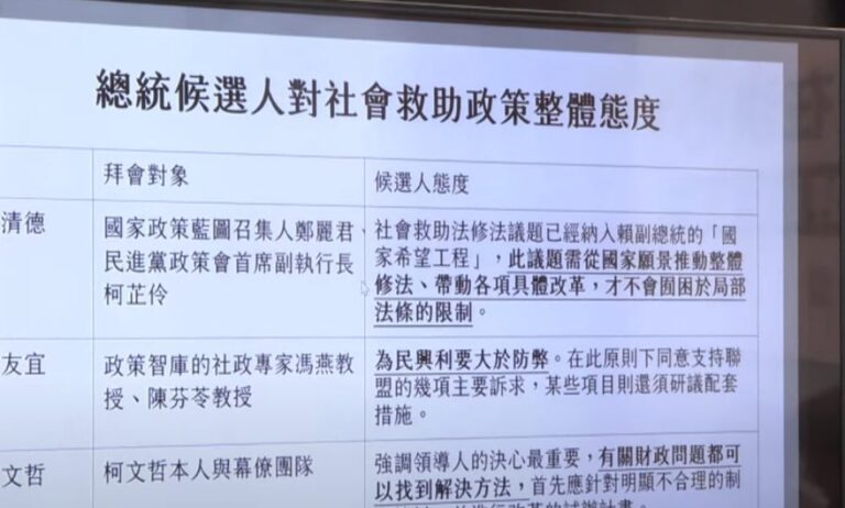 社救聯盟提分析 盤點總統候選人社會救助政策