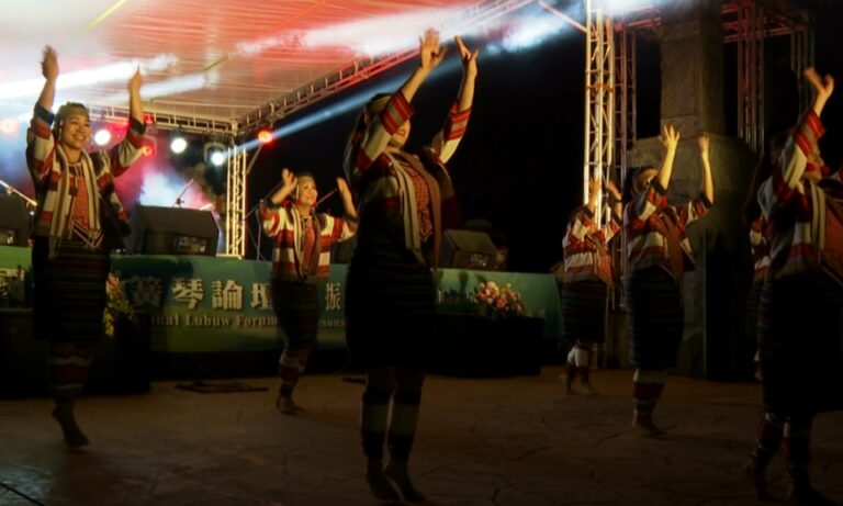 20由苗栗縣政府推動成立的苗栗縣原住民族及多元族群文化藝術舞蹈團,成員來自泰雅、賽夏、客家及新住民等,在國際原住民音樂家前,共同演繹泰雅傳統樂舞。