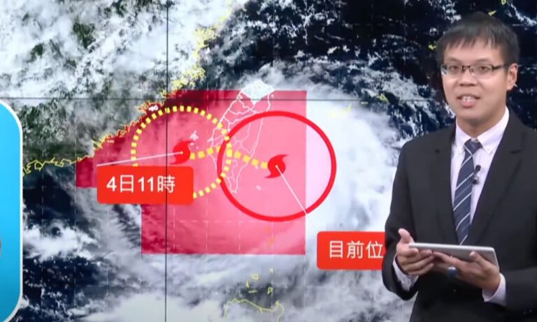 2氣象預報員 曾昭誠:「今天(3)中午11點的時候,颱風已經來到了台東東方大概100公里的海面上,這個颱風未來會持續地往西北西的方向移動,逐漸地壟罩上述的警戒區域,除了台灣的陸上颱風警報之外,我們其實也針對台灣鄰近的海面,東北部海面、東南部海面、巴士海峽跟台灣海峽發布颱風警報,請各沿海航行及作業船隻應該要嚴加戒備。