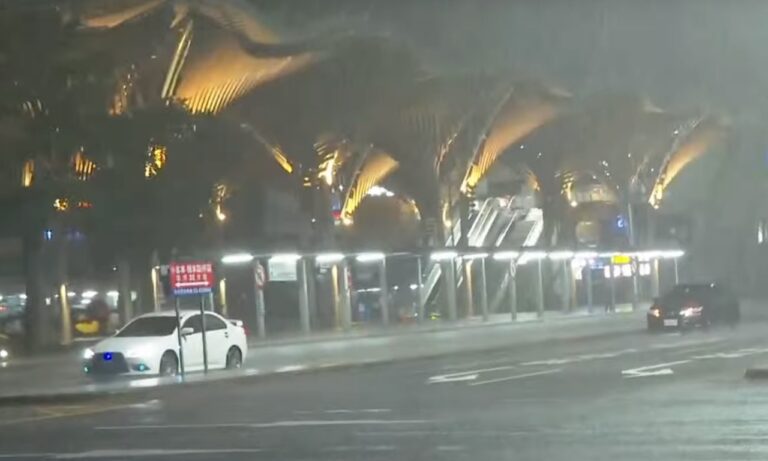 海葵登陸花蓮風雨強 火車站遮雨棚被吹掀