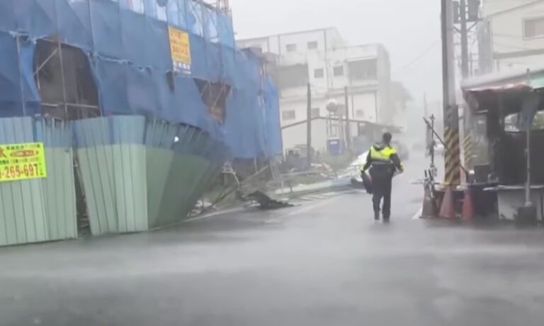 颱風挾風雨致災 玉里施工棚架遭硬生吹翻