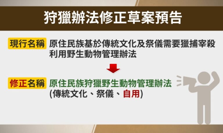 翻開「原住民族狩獵野生動物管理辦法」的修法草案,修正要點包含海洋野生動物保育的中央主管機關改由海洋委員會管轄,也將在一般狩獵範疇中「自用」的定義規範清楚;另外若是誤打瀕臨物種,在3日內通報則免刑責等,來保護原住民族文化權。
