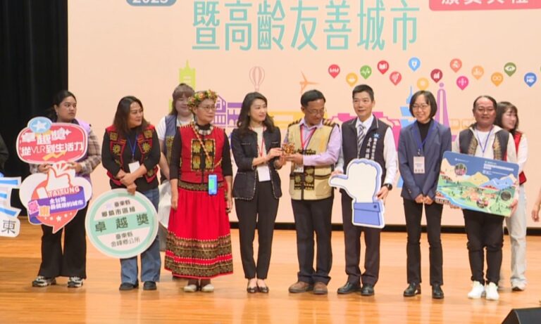 開心喊著口號,台東金峰鄉公所從國民健康署長沈靜芬手中,拿下今年「台灣健康城市暨高齡友善城市」鄉鎮市區組的卓越獎;金峰鄉長蔣爭光表示,公所透過主導治理模式,依照當地的地理條件打造健康支持網絡,同時也會到其他地區交流取經,不只更認識生活環境、也把「共生」理念帶回部落。