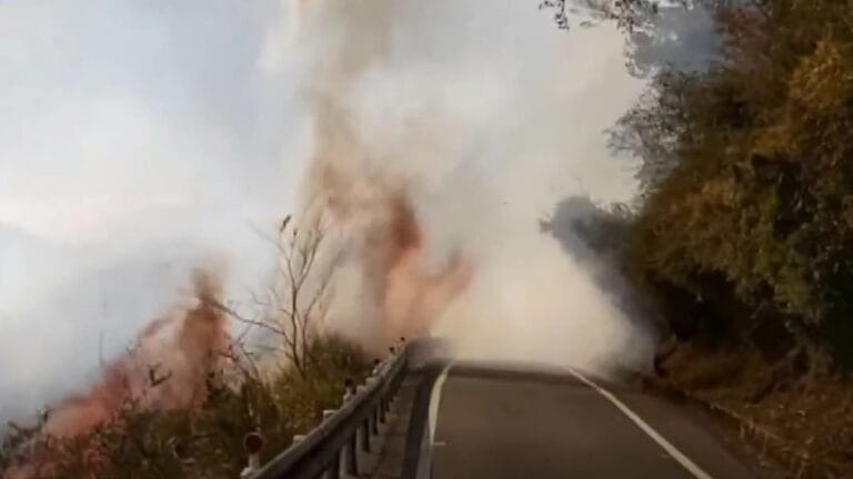 仁愛鄉台14甲線翠峰通往合歡山路段19.5公里處,這個月9號發生邊坡火燒山事故,大火延燒兩天好不容易才撲滅,雖然沒有造成人員傷亡,但這場火卻燒毀清境地區部分民眾水管,波及50多戶居民無水可用。