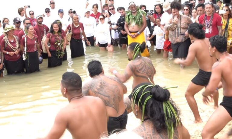 穿著傳統服飾走在夏威夷大街上,這是由在夏威夷不同文化團體合辦的「泛太平洋遊行活動」,包括日本、中國、以及當地夏威夷團體;而出席《太平洋藝術節》的台灣多個代表團也參與其中。