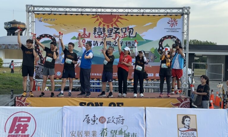 喜樂發發吾部落族人在元旦清晨,包括小孩、青壯年、耆老,一起齊聚在部落上方的星星平臺,舉行元旦的升旗典禮;雖然出發前部落還下著小雨,不過大家都精神滿滿走上崑崙坳古道。