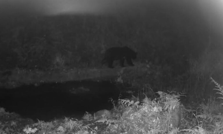 夜晚時刻,一頭黑色身影就這樣悄悄經過監測鏡頭,拉近一點再看一次,這頭黑色身影正是台灣保育類動物,台灣黑熊,這是今年9月在阿里山特富野部落獵場領域,往北霞山登山路徑所拍攝到的影像,而這也是獵人湯志卿第四度拍攝到台灣黑熊的身影,湯志卿也發現,近年野生動物出現在靠近人類生活區域的頻率也日漸增加。
