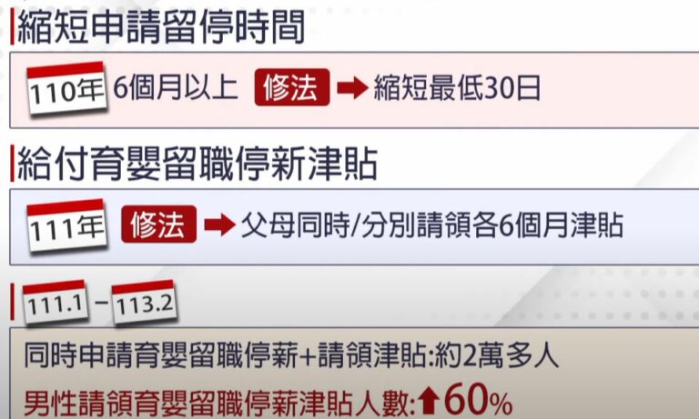 生活 彈性育嬰留職停薪 性別平等工作法 勞動部放寬育嬰留職停薪 立委盯缺工現象 84 勞動部長 許銘春:「性工法(性別平等工作法),雖然已經將育嬰留停的門檻降為30天,但民間仍有更為彈性的期盼。 2024-04-08 19:39