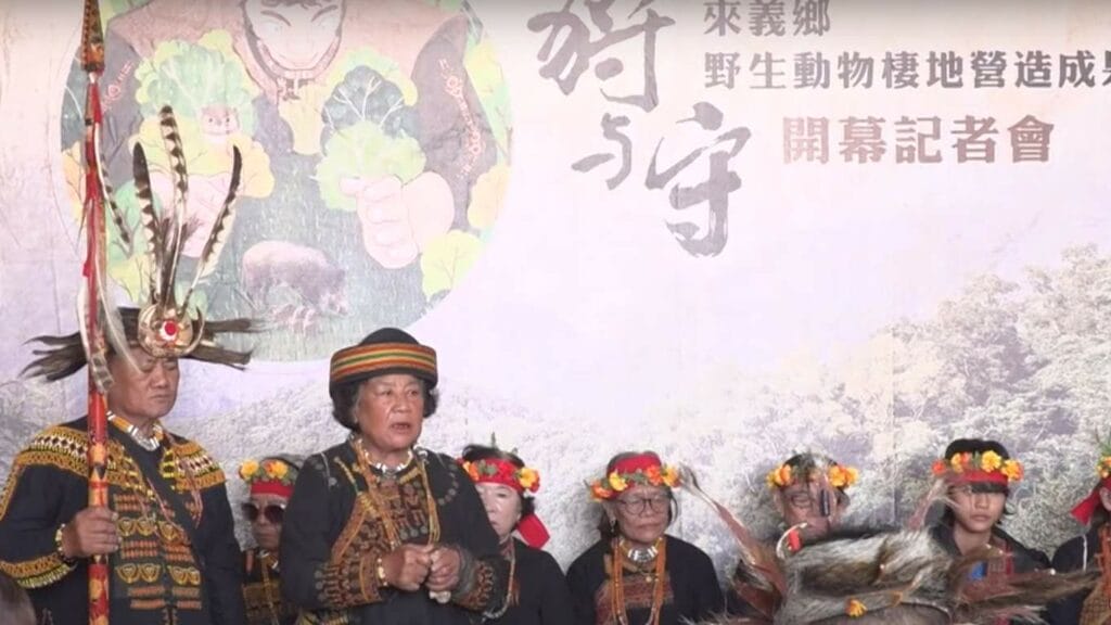 pulingaw(靈媒)以傳統祭祀為「狩與守」-野生動物棲地營造成果展祈福,來義鄉傳統狩獵文化協會從109年起,在屏科大團隊輔導下,把來義鄉內五條獵人傳統狩獵區域路線,進行資源盤點跟動植物監測,架設人工巢箱跟水盆,吸引飛鼠重返山林。