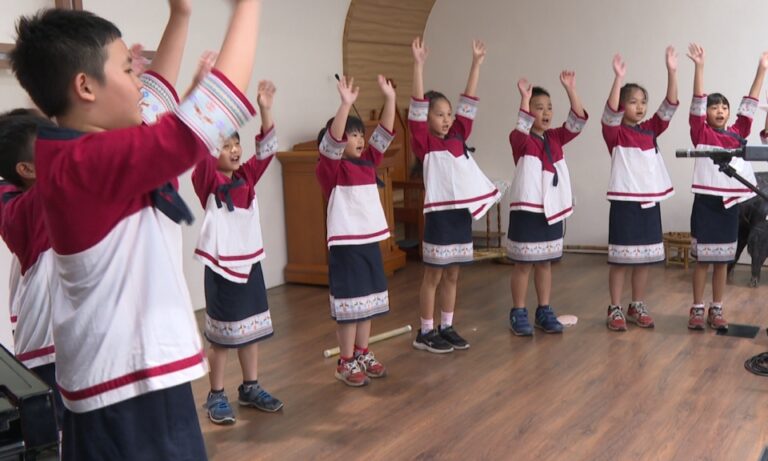木柵國小西拉雅兒童合唱團,巧妙模仿山林動物搭配嘹亮歌聲,獲得全場喝采。