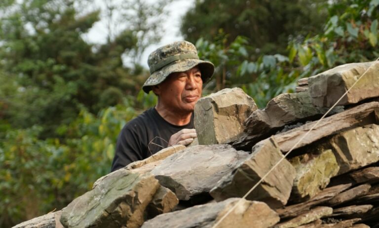 教文 原住民文化導覽實務 屏東大學 樹皮布 石板 屏東大學原專班 師生學做樹皮布、砌石板 34 鋸下構樹枝幹,泡水後割下樹皮並用槌子反覆敲打製成一塊柔軟的樹皮布,再用薯榔汁液繪圖上色,一件件樹皮布作品就此誕生。 2023-06-14 19:19