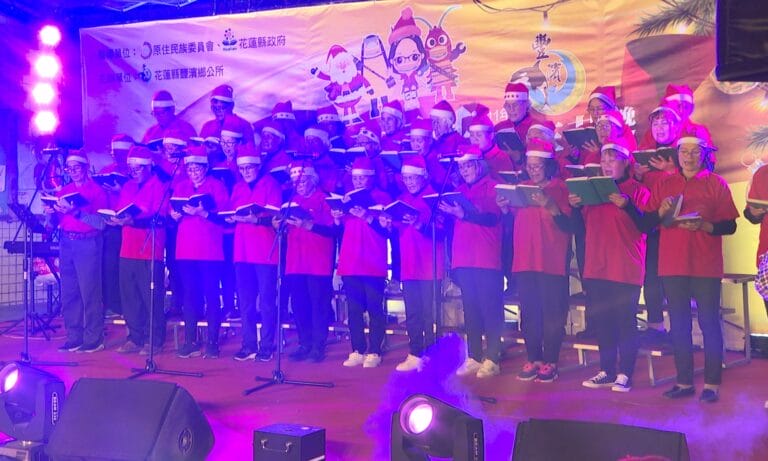 來自靜浦部落的族人高聲吟唱族語詩歌,慶祝耶誕節的來臨。