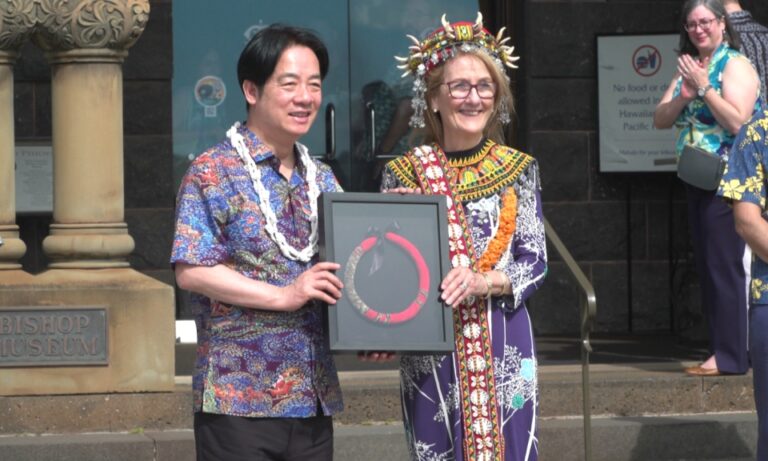 國際 畢夏普博物館 總統賴清德 美國夏威夷 總統抵達夏威夷 訪畢夏普博物館互贈禮物 96 畢夏普博物館董事 Manu Kaiama:「我們生生不息,讓她的遺緒永垂不朽。 2024-12-01 19:10