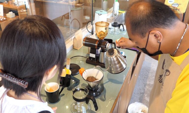 人物 生活 台東金崙友善工坊 白永恩基金會 視障咖啡師林佳箴 金崙友善工坊設立 訓練學員手沖咖啡技巧 55 把磨好的咖啡豆放進裝有濾紙的容器裡,再用煮好的熱水慢慢倒進,透過容器跟濾紙,讓咖啡慢慢流進咖啡壺裡,一杯香醇濃郁的手沖咖啡就完成,全國首位視障咖啡師林佳箴,來到台東金崙友善工坊,指導工坊學員沖泡手工咖啡。 2024-05-23 12:43
