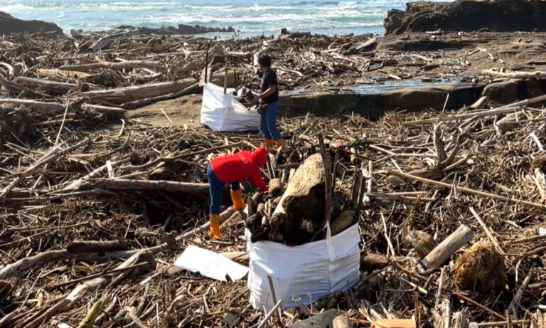 原鄉 環境 漂流木 石梯坪風景風區 石梯坪風景區岸際布滿漂流木 人工徒手清運 44 石梯坪堆積的漂流木,工人以徒手的方式,將漂流木一一拉出後,集中放到太空包中,再由重機械吊往集中點。 2025-02-21 12:31