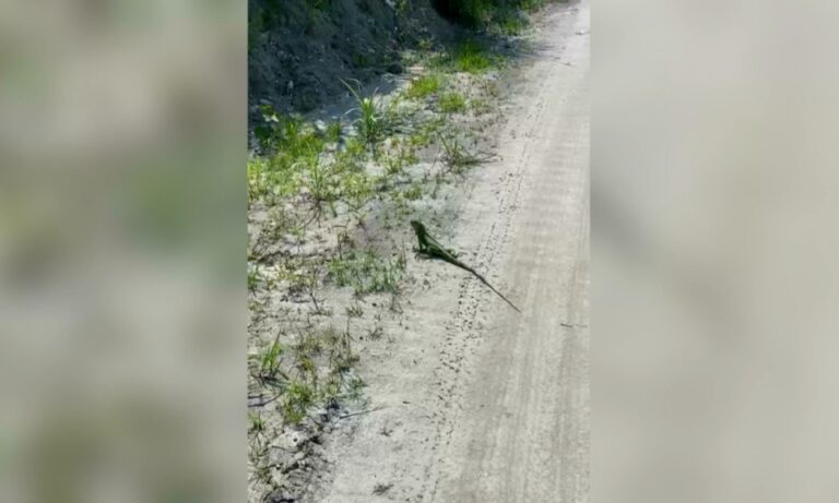 不速之客入侵! 綠鬣蜥現蹤玉里西瓜園