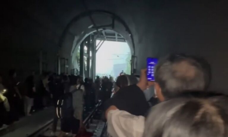 乘客表情無奈地整理行李準備下車,有的人拿起電話報平安,因為下車的地點就在隧道內。