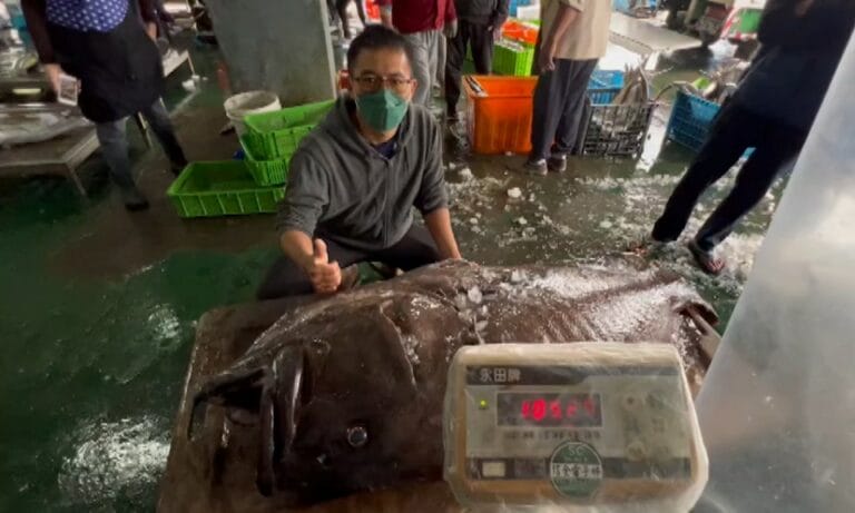 原鄉 生活 台東 漁民 船釣 野生石斑魚 幸運!台東漁民海釣 意外捕獲破百斤大石斑 47 吊車緩緩將大石斑魚吊起來,而這條石斑魚體長幾乎跟成人一樣高,一旁好奇遊客也紛紛拿出手機拍照合影。 2023-02-01 19:25