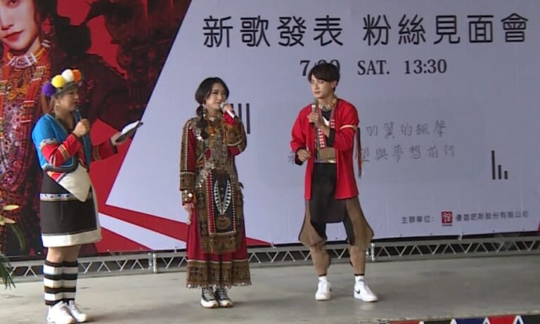 阿里山著名的男女歌唱團體《藍色楓葉」用動人歌聲感動現場觀眾。