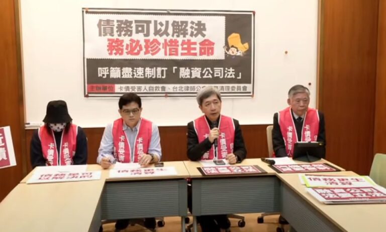 政經 卡債 委託借款 融資公司法 年關將近債務難關 可更生、清算方式處理 95 日前高雄有年輕夫婦受不了還債壓力,一家五口尋短,為了避免悲劇再發生,卡債受害人自救會上午開記者會呼籲,債務可以解決,呼籲債務人別因此想不開! 卡債受害人自救會顧問 林永頌:「只要你誠實來面對看你的情況,會量你的能力來處理你的債務,在一定合法的程序下,你可以全部或部分免除債務是有可能的。 2024-01-28 19:07