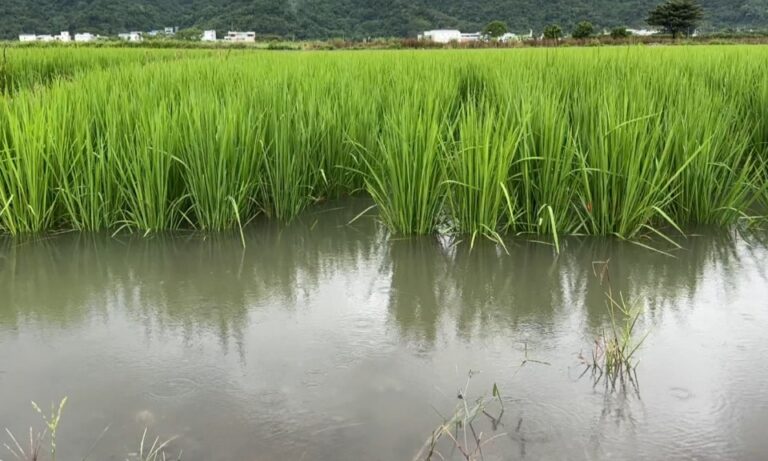 風災 花蓮玉里 間歇性強降雨 颱風 玉里間歇性強降雨 導致部分水稻田淹水 79 受到颱風影響,花蓮玉里這兩天下起間歇性強降雨,造成秀姑巒溪水暴漲,每遇颱風容易淹水的大禹、三民地區,也有水稻田發生淹水狀況。 2024-10-02 19:27
